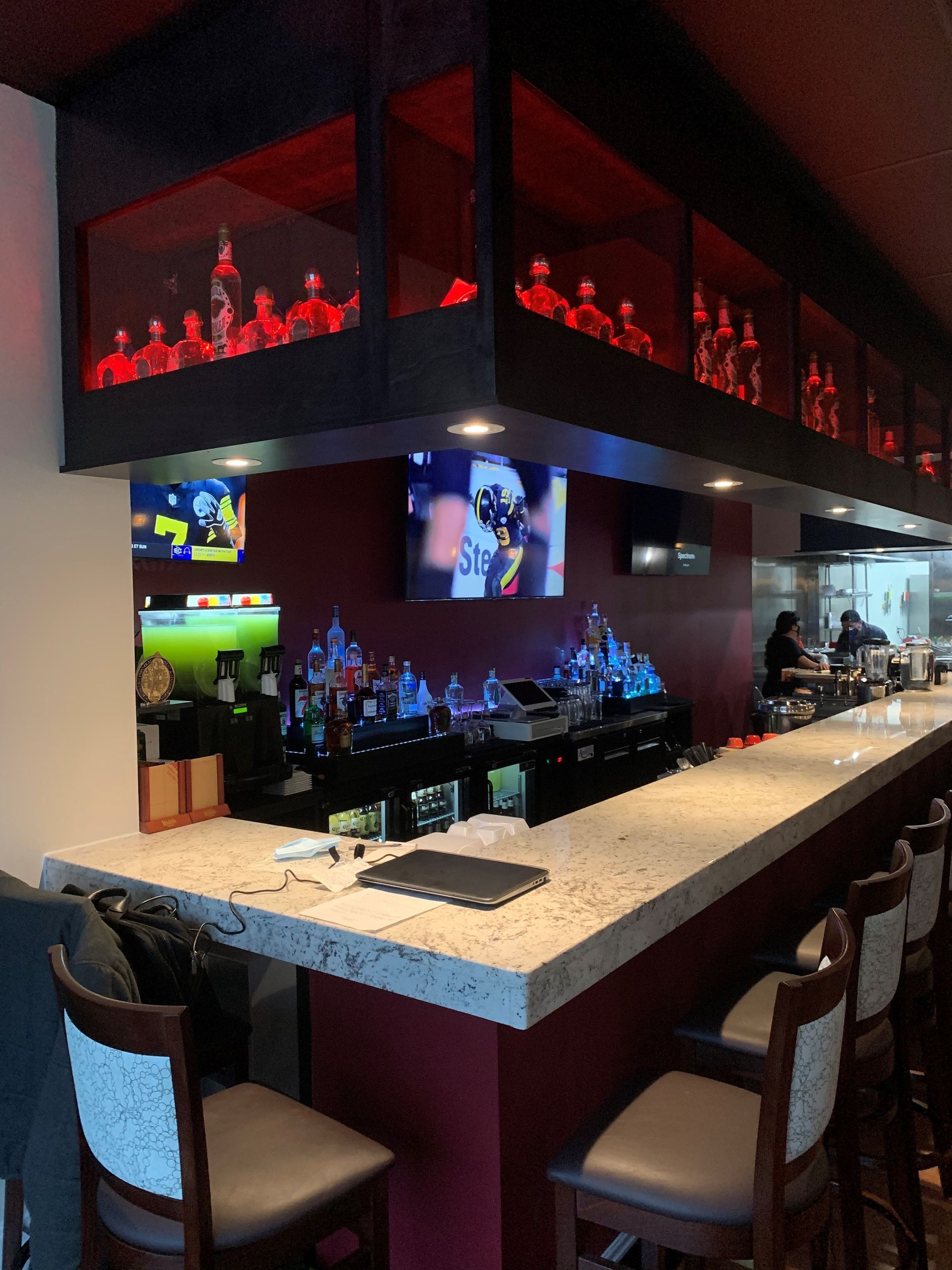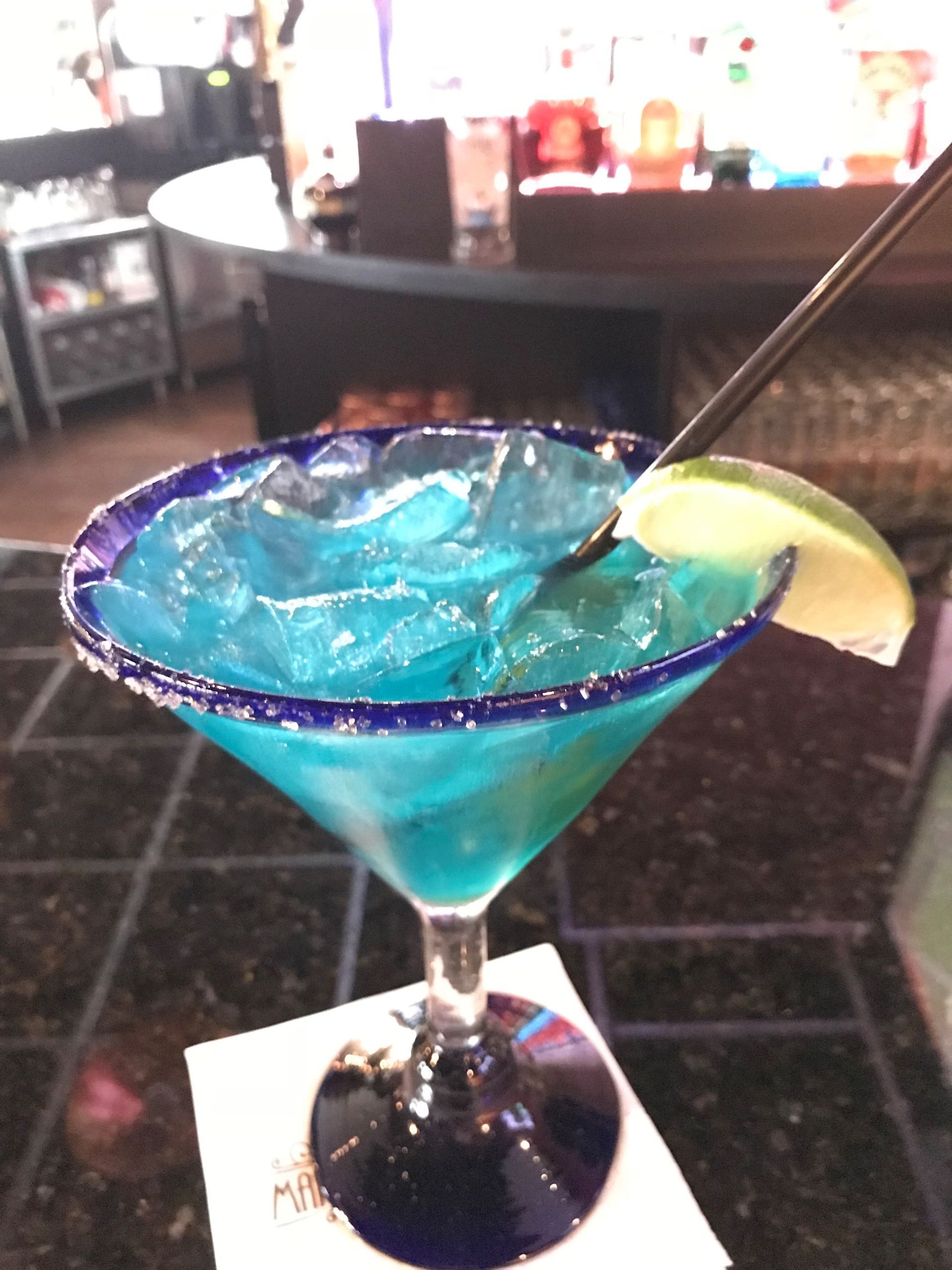 Our signature Tequila campanario reposado, homemade margarita mix and blue curacao.